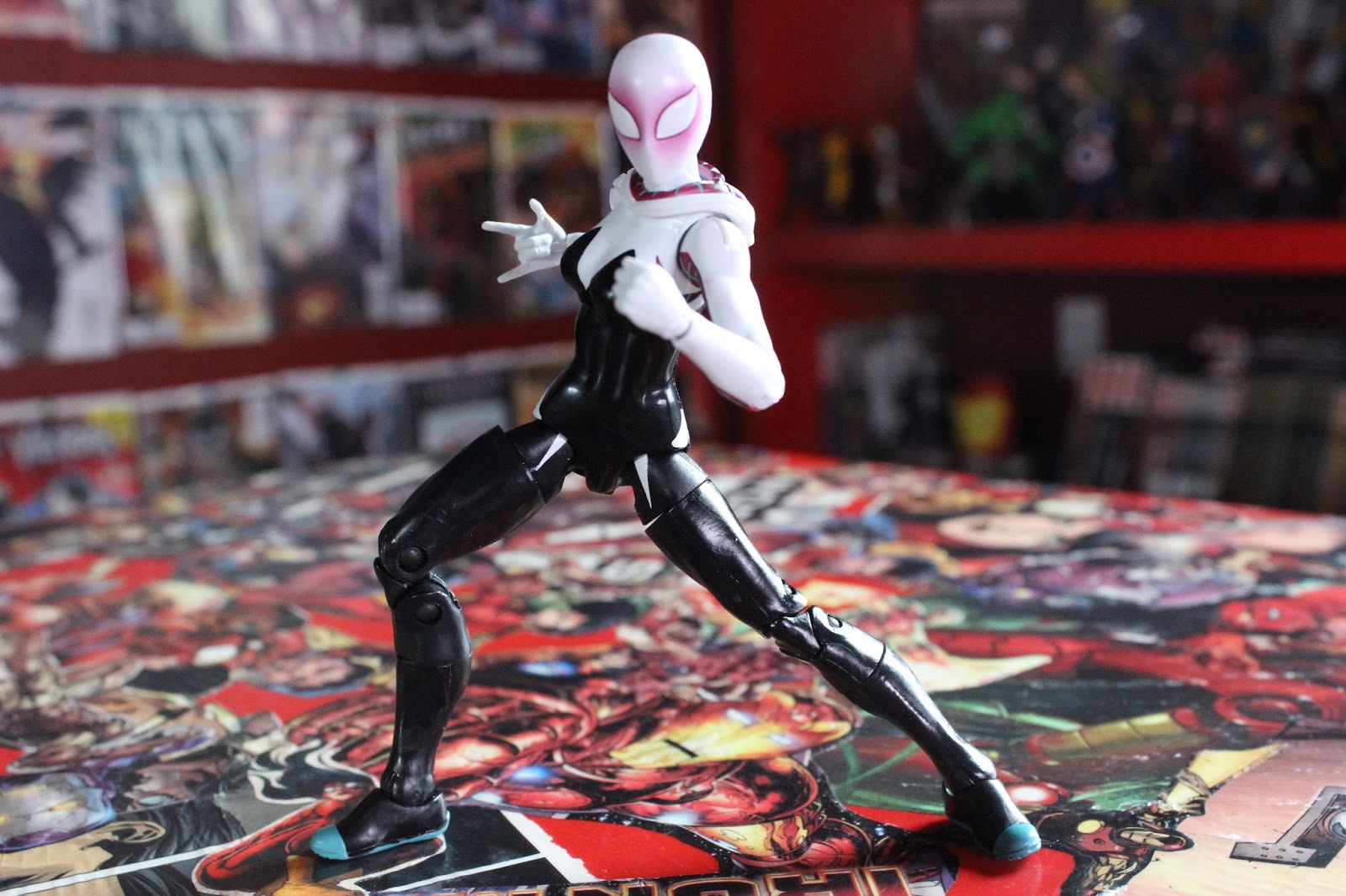 Regardless, Spider-Gwen is a fun character to take photos of. The head is not hindered one bit with hood on and thankfully I do not have quality issues with her hands like I did with U.Spider-Woman. Truth to be told, some alternate hands would have done wonders with more fun. And I wonder when Hasbro will add some webbing accessories? But regardless to say, I did have fun and took a bit more photos.